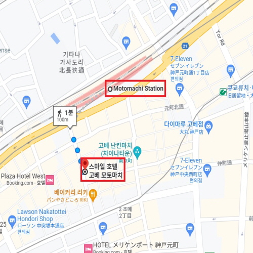 간사이 공항에서 차로 약 1시간, JR모토마치역 서쪽 출구로 나오면 도보로 단 1분 거리에 위치하였으며 고베 하버랜드, 난킨마치 등 비즈니스는 물론 고베 관광에 편리한 입지를 갖춘 호텔이다. 청결과 안전을 최우선으로 하는 고베 모토마치 스마일 호텔은 위생상의 이유로 조식은 세트메뉴로 제공되고 있다. 또한 체크인 후 늦은 밤까지 이용 가능한 웰컴 커피 서비스도 인기가 있으며 코인 세탁실, 만화 코너, 기념품 숍 등 다양한 시설들이 갖춰져 있다. |