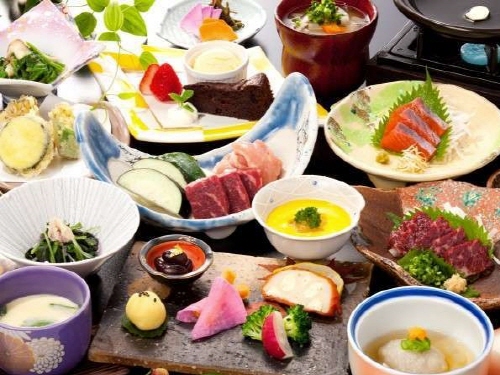 | 석식 | 있음 / 가이세키 정식 / 운영시간 18:00 ~ 21:00 / 특이사항 : 기본 객실 내 식사이나, 3명 이상부터 식사처 제공. |