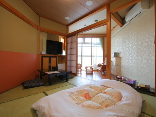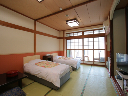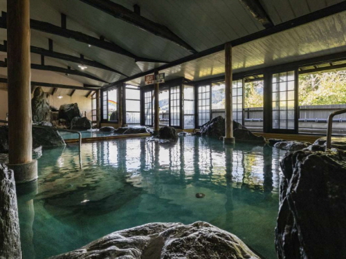 총 33개의 객실은 화양실, 화실, 양실의 3가지 타입이 마련되어 있으며 치쿠고 강 쪽에 위치한 객실 또는 온천가 쪽 객실 중 취향에 맞게 선택할 수 있다. 호텔의 매력 중에 하나인 원천 카케나가시 형식의 강알칼리성 온천은 오래된 각질을 제거하고 촉촉하고 매끈한 피부로 만들어주며 피부를 자극하는 특정 성분이 강하지 않아 안심하고 이용할 수 있다. 또한 본관의 대욕장에는 미끄럼틀이 있어 아이들에게 인기가 있으며 별관에는 각기 다른 5개의 전세탕이 있어 다양한 분위기 속에서 느긋하게 온천을 즐길 수 있다. |