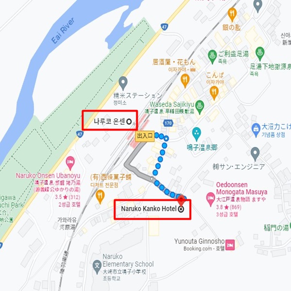 나루코온천은 천년의 역사를 자랑하는 명물온천지로 美肌の湯(피부가 아름다워지는 온천수) 로 유명한 곳이다. 이러한 나루코온천지에 자리잡은 나루코관광호텔은 400년 이상의 역사를 자랑하는 곳이다. 역사가 깊은 만큼 서비스면에서 만족도가 높아, 재방문 고객이 많은 것으로 정평이 나있는 곳이다. 나루코온천역(鳴子温泉駅)에서 도보로 3분이면 이동 가능한 곳에 있어 나루코온천지를 관광하면서 즐기기에도 편리하다. |