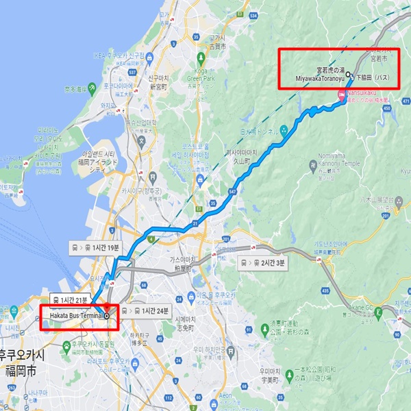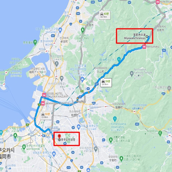 미야와카 토라노유는 후쿠오카 공항에서 약 40분이면 이동 가능한 곳에 위치한 료칸이다. 전 객실에 도기 또는 히노키 타입의 실내온천이 포함되어 있어, 객실 내 온천을 느긋하게 이용할 수 있다. 식사는 지역의 식재료를 이용한 뷔페식으로 제공된다. 후쿠오카 내에서 온천을 즐기면서 여유로운 시간을 즐기고 싶은 여행객에게 추천하는 료칸이다. |