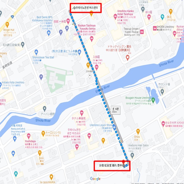우레시노의 하나레 코츄우 료칸은 쿠자쿠 료칸의 자매 료칸이다. 전 객실 3개뿐인 소규모 료칸으로, 반노천온천포함 객실이 1개, 노천온천포함 객실이 2개이다. 전 객실 최대 정원은 단 2명으로 총 6명만 숙박이 가능한 료칸이다. 식사가 맛있다는 호평을 받고 있는 쿠자쿠의 자매 료칸인만큼 식사에도 신경을 쓰고 있으며, 식사는 객실의 전용 다이닝 공간에서 느긋하게 식사를 즐길 수 있다. 친구, 커플, 부부의 2인 여행으로 추천하는 료칸이다. |