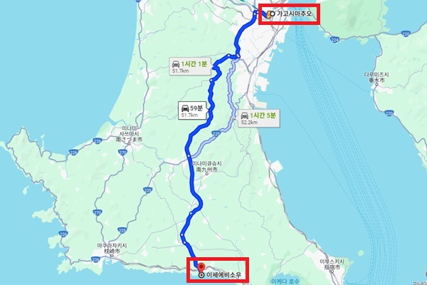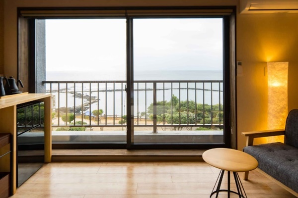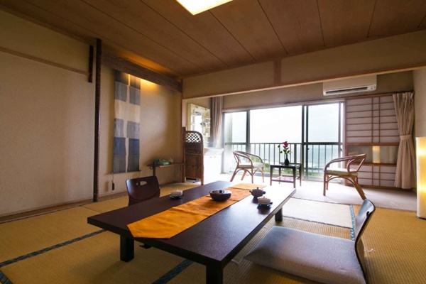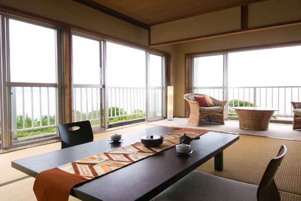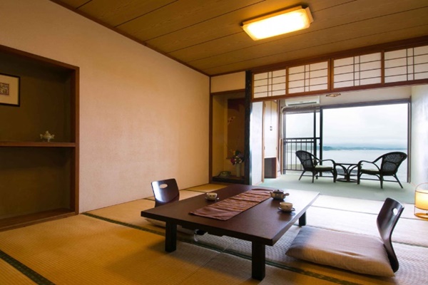伊能忠敬(이노 다다타카)가 천하의 절경이라고 감탄한 경치를 조망할 수 있는 료칸이다. 카이몬다케는 영화 및 고구마소주 CM 등으로도 활용되어 이제는 미나미사츠마를 상징하는 경치로 자리잡게 되었다. 이러한 카이몬다케를 바다와 함께 방 안에서 조망할 수 있다는 점이 장점인 곳이다. 또한 료칸 이름에서도 알 수 있듯이 신선한 이세에비를 사용한 요리를 맛볼 수 있는 곳이다. |