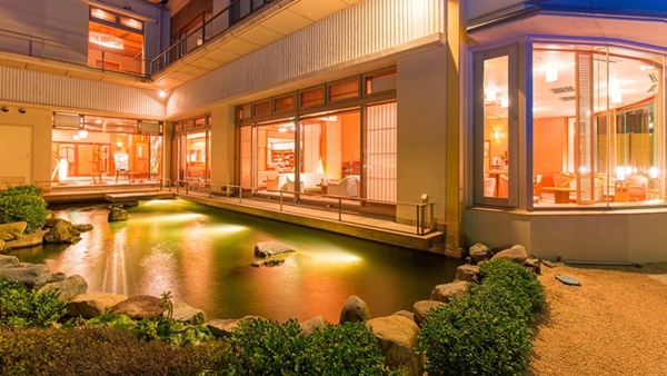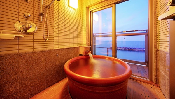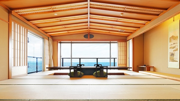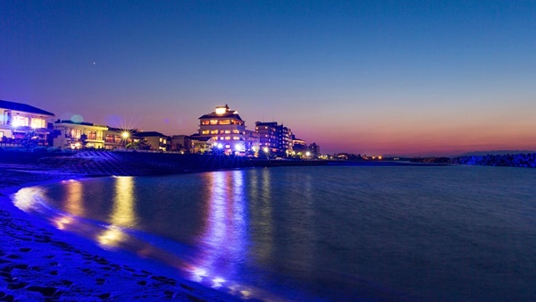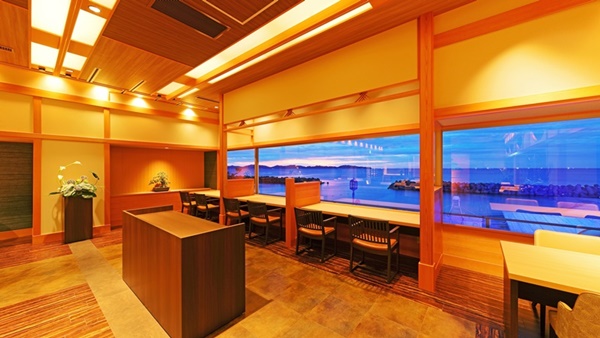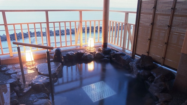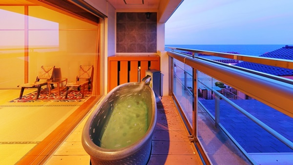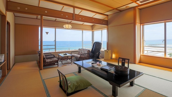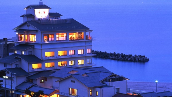 카이케쇼우게츠는 카이케해안에 인접하여 바다를 전망할 수 있는 고급 료칸이다. 일부 객실은 오션뷰로, 객실에서 바다를 전망할 수도 있다. |