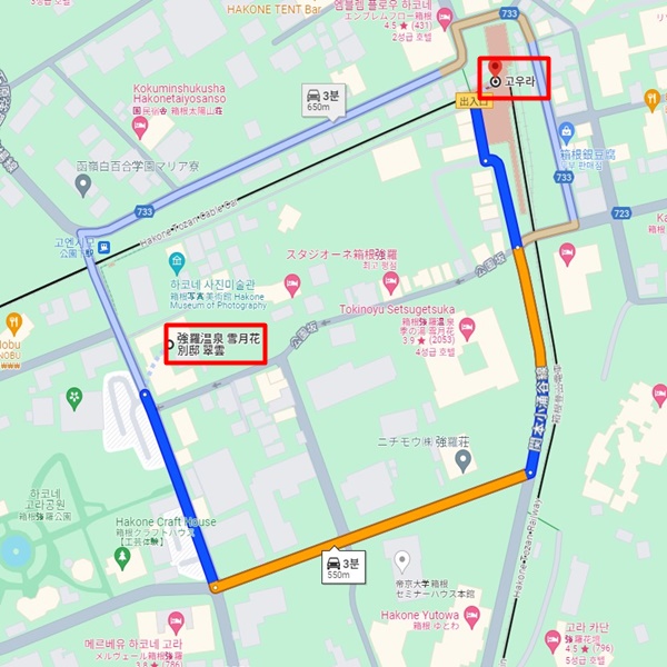 스이운 료칸은 고라역에서 도보 5분이면 이동 가능한 곳에 위치한 와모던 스타일의 료칸으로, 세츠게츠카 료칸의 자매료칸이다. 아동숙박불가인 료칸으로 성인들만의 조용하고 오붓한 시간을 보내기에 안성맞춤인 료칸이다. 전 객실에 노천온천이 포함되어 있어 느긋하게 온천을 즐기며 휴식을 취할 수 있다. |