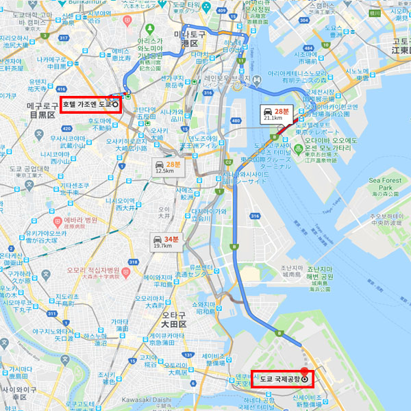 공항 기준하네다 공항에서 차로 약 28분 |