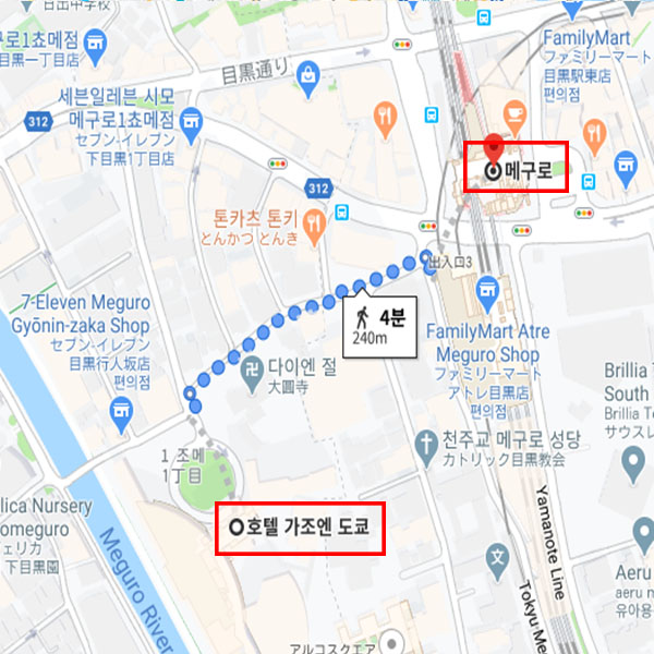 숙박지 주변메구로역에서 도보로 약 4분 |
