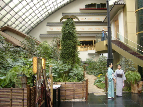 -일본인들이 선택한 욕실분위기가 좋은 관동지역 호텔 1위!~. 메구로 가조엔은 20여개의 객실이 모두 80㎡로 초 고급 스위트급에 해당하는 객실 넓이, 그리고 화모던을 중심으로 화양실, 화실 두가지의 객실을 구비하고 있다. 메구로 가조엔은 원래는 결혼식장으로 이용되었으나 현재는 결혼식장 외에 결혼식객 및 일반 손님을 위한 스위트룸을 구비해 놓고 있다. 특히 일본특유의 예술성이 덧보이는 복도 및 구석구석 분위기는 처음 가본 이들에게 있어서는 입이 벌어질 만큼 웅장한 규모를 자랑한다. 일본 국내에서는 메구로가조엔의 시설견학을 위한 지방투어도 이루어지고 있을 정도로 결혼식객 이외에 숙박객, 관광객들도 1년내내 인산인해를 이루는 곳이기도 하다. 특히 각 시설의 칠기는 한국의 옷칠명인이기도 한 전용복선생이 직접 1988년 부터 3년동안 일본으로 넘어와 칠기작업 총 지휘 한 것으로도 유명하며, 여기저기 한국의 학모양의 칠기 모습도 찾아볼 수가 있다. |