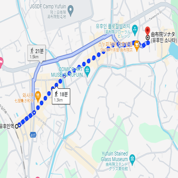 유후인역에서 도보로 이용 가능한 호텔로 편리한 입지 조건을 가진 숙소다. 가족 노천탕이 있어 가족 또는 커플 단위의 관광객에게 인기가 좋다. 간단하게 숙박하며 유후인의 볼거리와 먹거리를 즐기려고 하는 관광객들에게 추천하는 곳이다. |