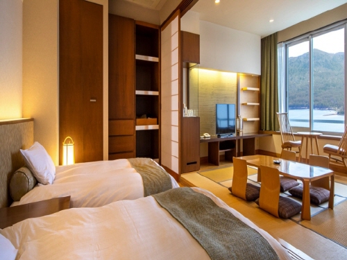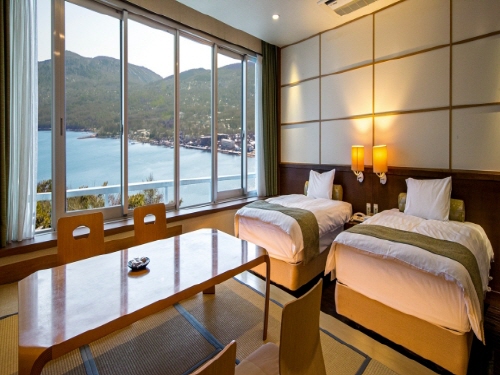 후지산과 야마나카코의 경치, 아름다운 요리, 일류의 서비스. |