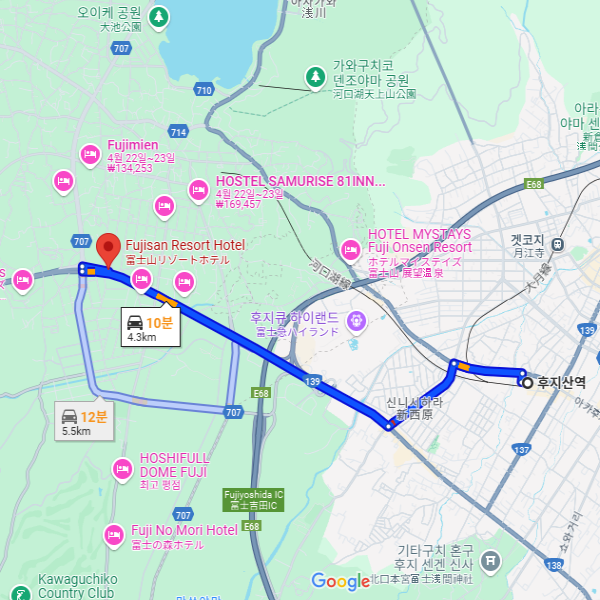 후지산, 가와구치호, 후지큐 하이랜드 등과 인접해 있어 레저와 비즈니스에 최적인 위치입니다. 근처에는 슈퍼마켓과 편의점이 도보 거리에 있어 매우 편리합니다. 영봉 후지산이 우뚝 솟은 절호의 위치에 자리잡은 후지산 리조트 호텔. |