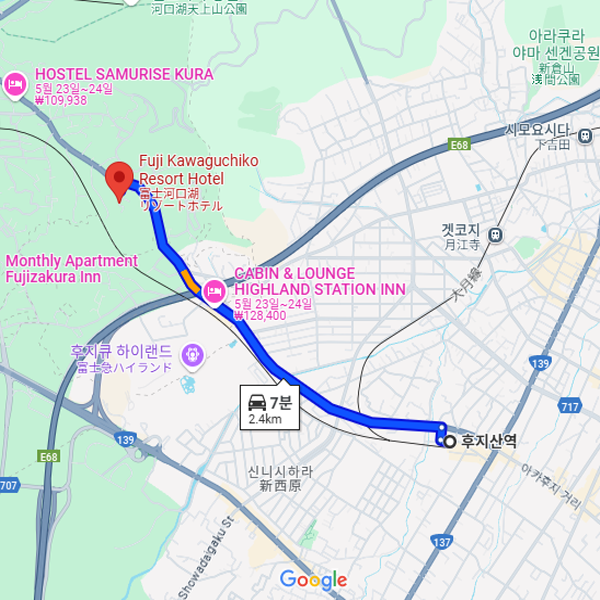 | ※ 가와구치코역(10번 승강장)에서 무료 셔틀 이용 가능 (역 도착 후, 대표 전화 0555-73-3888로 연락해 주세요) ※ 셔틀 서비스 이용 가능 시간은 07:00~21:00입니다. 이외의 시간에는 이용이 어렵습니다. 미리 양해 부탁드립니다. |