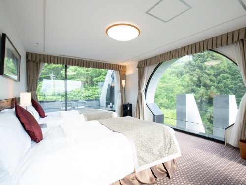 눈앞에 펼쳐진 후지산의 절경과 천연 온천, 저녁식사는 세계의 셀럽들을 매료시키는 셰프 야마모토 히데마사 씨가 프로듀스한 일본식 프랑스 요리를 만끽할 수 있습니다. |