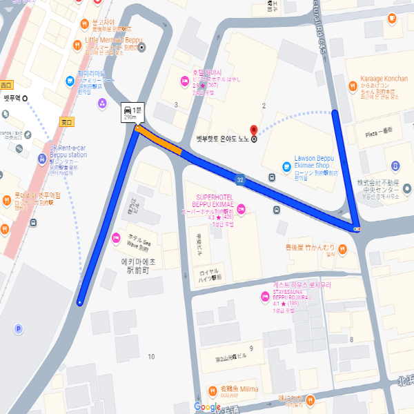 JR벳푸역에서 도보 3분으로 접근성이 용이한 벳부 비즈니스 호텔이다. |