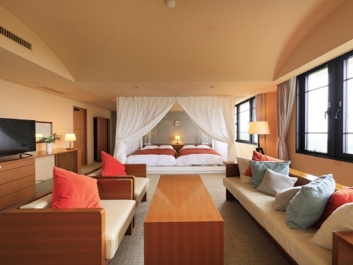 비일상적인 시간을 즐기다 라는 브랜드 컨셉을 가진 후우가. 레스토랑에서 철판 가이세키 요리와 세련된 바&라운지 등 편안하게 지낼 수 있는 공간에 힘을 쏟은 컨텐츠들이 곳곳에 배치되어 있다. 츠루미다케를 바라보는 정망 가족 노천온천에서는 소중한 사람과 함께 특별한 시간을 보낼 수 있다. 사계절마다 모습을 바꾸는 장대한 경치를 바라보며 편안하게 휴식을 취할 수 있다. 또 라이브 키친에서 솟아오르는 불꽃, 불로 장식된 미식의 수많은 요리들, 소중한 사람과 함께 오감을 자극하는 멋진 식사를 만끽할 수 있다. |