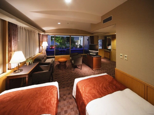도고 온천역에서 도보 5분, 도고 온천 본관 바로 앞에 위치해 있어 관광과 비즈니스에 최적입니다. |