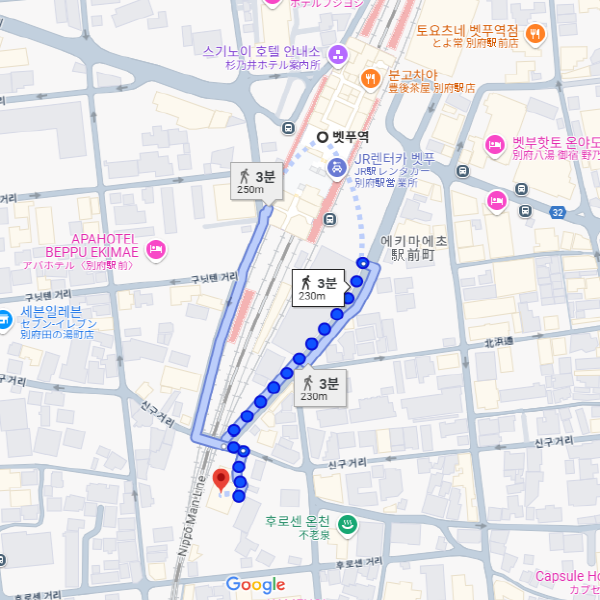 JR 벳부역에서 도보 4분, 벳부 IC에서 차로 약 12분, JR 오이타역에서 차로 20분 소요되는 위치에 자리한 호텔입니다. 모든 객실은 금연이지만 홀수 층에 흡연 부스도 있습니다. 조식 뷔페 무료 제공되며 모든 객실 Wi-Fi 완비되어 있습니다. 코인 세탁기도 있어서 언제든지 세탁 가능하시며 24시간 직원 대응가능한 호텔입니다. |