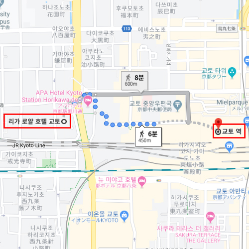숙박지 주변교토역에서 도보 약 6분 소요 |