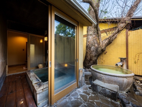 별채 형식의 전통 료칸으로, 벳푸 철판 온천 지역의 깊은 숲속에 고즈넉히 자리해 있는 6실 규모의 소규모 고급 숙소입니다. 각 객실은 카케나가시 방식의 실내온천 또는 노천온천이 구비되어 있어, 프라이빗하게 온천을 즐길 수 있으며, 모든 식사는 객실 내에서 제공되어 조용하고 편안한 시간을 보낼 수 있는 것이 큰 매력입니다. 온천은 철분이 적고 나트륨·염화물 성분이 풍부한 온천수로, 피부에 부드럽게 작용한다고 알려져 있으며, 숙박객은 넓은 가 노천탕을 무료로, 시간 제한 없이 이용할 수 있습니다. 음식은 도고규 같은 오이타 특산 고기와 바다·산의 제철 식재료를 활용한 고급 가이세키 코스를 객실에서 한적하게 즐길 수 있어, 식사 품질도 상당히 높은 편입니다. 아울러, JR 벳푸역 또는 칸나와 온천 지역에서 셔틀 또는 버스 이용 약 20~25분, 전용 무료 주차장도 있어 자동차 여행객에게도 편리합니다. 전통적인 우아함과 현대적 편안함을 동시에 갖추고 있는 이곳은, 온천과 맛, 프라이빗한 경험을 중시하는 분들께 최적의 선택지입니다. |