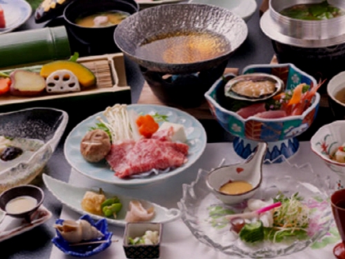 | 석식 | 있음 / 가이세키 정식 / 특이사항 : 식재의 신선함을 살린 것은 물론, 지부니등의 카나자와지역의 향토요리 스타일의 가이세키요리 |