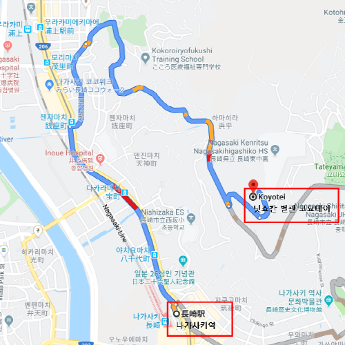 숙박지 주변나가사키역에서 차로 약 10분 소요 |