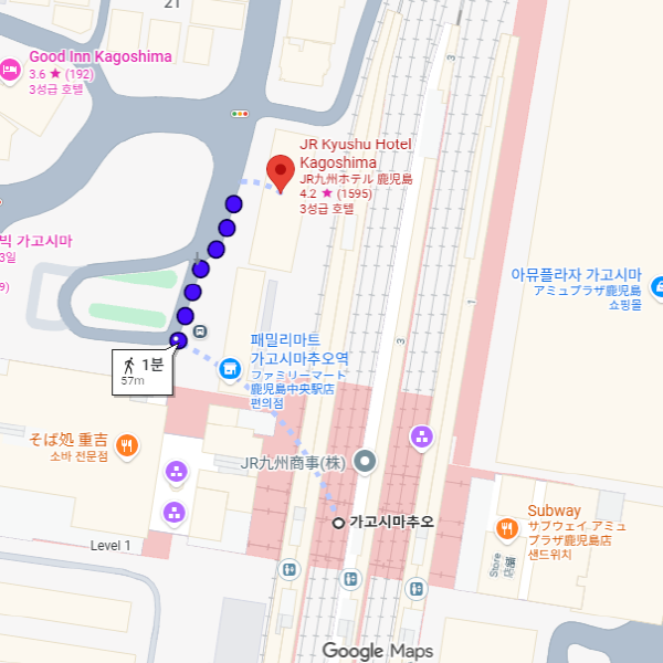 JR 규슈 호텔 가고시마는 JR 가고시마 중앙역과 직접 연결된 위치에 자리한 JR 규슈 그룹의 호텔로, 신칸센과 JR 노선, 공항버스 등을 이용하기 편리한 뛰어난 교통 접근성을 갖추고 있습니다. 가고시마 중앙역 주변에는 아뮤플라자 가고시마 쇼핑몰과 다양한 레스토랑, 상업시설이 있어 쇼핑과 식사를 즐기기 좋으며, 시내 전차를 이용하면 텐몬칸 등 가고시마 주요 관광 지역으로 이동하기도 편리합니다. 호텔은 모던하고 깔끔한 객실 환경을 제공하며 싱글, 더블, 트윈 등 다양한 객실 타입으로 구성되어 있어 여행객과 비즈니스 이용객 모두 편안하게 이용할 수 있습니다. 전 객실 무료 Wi-Fi, 개별 공조 시스템, TV, 냉장고, 전기포트 등 기본 편의시설이 갖추어져 있으며 호텔 내 레스토랑에서는 일본식과 서양식 메뉴가 포함된 조식이 제공됩니다(조식 포함 여부는 예약 플랜에 따라 상이). 가고시마 중앙역과 바로 연결된 편리한 위치와 안정적인 JR 계열 호텔 서비스를 갖춘 숙소로 가고시마 여행이나 출장 시 이동이 편리한 호텔입니다. |