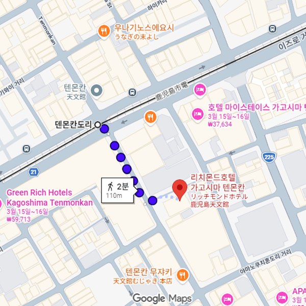 리치몬드 호텔 가고시마 텐몬칸은 가고시마 최대 번화가인 텐몬칸 중심에 위치한 도심형 호텔로, 쇼핑과 미식, 관광을 즐기기에 매우 편리한 입지를 갖추고 있습니다. 텐몬칸 상점가와 다양한 레스토랑, 카페, 상업시설이 도보권에 있으며 시내 전차 정류장도 가까워 가고시마 중앙역과 사쿠라지마 페리 터미널 등 주요 관광지로 이동하기 편리합니다. 리치몬드 호텔 브랜드는 일본 내에서도 서비스와 객실 관리 수준이 높은 호텔 체인으로 알려져 있으며, 깔끔하고 쾌적한 객실 환경을 제공합니다. 객실은 싱글, 더블, 트윈 등 다양한 타입으로 구성되어 있으며 전 객실 무료 Wi-Fi, 개별 공조 시스템, TV, 냉장고, 전기포트 등 기본 편의시설이 갖추어져 있어 여행객과 비즈니스 이용객 모두 편안하게 이용할 수 있습니다. 호텔 내 레스토랑에서는 조식이 제공되며 예약 플랜에 따라 조식 포함 여부가 달라질 수 있습니다. 텐몬칸 중심에서 관광과 쇼핑, 미식을 함께 즐기기 좋은 위치와 안정적인 서비스 품질을 갖춘 호텔로 가고시마 여행 시 편리하게 이용할 수 있는 숙소입니다. |