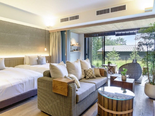 후후 가와구치코는 후지산 북쪽 가와구치코 호수 인근 숲속에 자리한 럭셔리 료칸으로, 자연과 조화를 이루는 프라이빗한 공간에서 여유로운 휴식을 즐길 수 있는 숙소입니다. 일본 고급 료칸 브랜드 ‘후후(FUFU)’ 시리즈 중 하나로, 전 객실 스위트 타입으로 구성되어 있으며 모든 객실에 전용 온천 노천탕이 마련되어 있어 객실에서 편안하게 온천을 즐길 수 있는 것이 특징입니다. 호텔은 후지산과 숲의 풍경을 고려해 설계된 건축과 자연 소재를 활용한 세련된 인테리어가 조화를 이루며 조용하고 차분한 분위기 속에서 휴식을 취할 수 있습니다. 객실은 넓은 거실 공간과 침실, 테라스로 구성되어 있으며 무료 Wi-Fi, 개별 공조 시스템, TV, 냉장고, 전기포트 등 편안한 숙박을 위한 기본 편의시설이 갖추어져 있습니다. 식사는 계절 식재료를 활용한 일본식 가이세키 요리로 제공되며 지역 특산 식재료를 활용한 정교한 요리를 즐길 수 있습니다. 가와구치코 호수와 후지산 관광을 계획하는 여행객이나 자연 속에서 조용한 휴식을 원하는 분들에게 적합한 프리미엄 료칸으로, 프라이빗한 온천과 자연 경관을 동시에 경험할 수 있는 일본의 대표적인 럭셔리 숙소 중 하나입니다. |