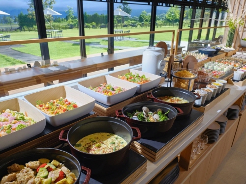 | 석식 | 있음 / 가이세키 정식, 프렌치 코스/철판요리 / 운영시간 18:00 ~ 21:00 / 특이사항 : 르미에르(프렌치)/신잔(가이세키)/카가리(철판요리) 3곳 |