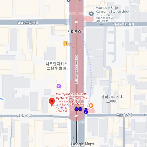 코트야드 바이 메리어트 교토 시조카라스마는 교토 중심 상업지구인 시조카라스마 지역에 위치한 메리어트 인터내셔널 계열의 호텔로, 지하철 시조역과 한큐 카라스마역이 도보권에 있어 교토 주요 관광지와 오사카 방면으로 이동하기 편리한 입지를 갖추고 있습니다. 니시키 시장, 기온, 가와라마치 등 교토 대표 관광지와도 접근성이 좋아 관광과 쇼핑, 미식을 함께 즐기기 좋은 위치에 자리하고 있습니다. 호텔은 현대적이고 세련된 디자인의 객실과 공용 공간을 갖추고 있으며 더블과 트윈 등 다양한 객실 타입으로 구성되어 여행객과 비즈니스 이용객 모두 편안하게 이용할 수 있습니다. 전 객실 무료 Wi-Fi, 개별 공조 시스템, 넓은 침대, TV, 냉장고, 전기포트 등 기본 편의시설이 마련되어 있으며 호텔 내 레스토랑과 라운지에서는 식사와 음료를 즐길 수 있습니다. 조식 또한 제공되며 예약 플랜에 따라 포함 여부가 달라질 수 있습니다. 교토 중심에서 편리한 교통과 안정적인 글로벌 브랜드 서비스를 원하는 여행객에게 적합한 도심형 호텔입니다. |