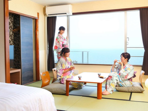 오오에도온센모노가타리 벳부 세이후호텔은 벳부역에서 도보 10분 거리에 위치한 전망 좋은 온천호텔이다. 벳부만이 바로 앞에 보이는 몇 안되는 온천호텔로, 옥상의 노천온천에서는 바다를 보며 온천욕이 가능하다. 특히, 날씨가 좋으면 노천온천을 즐기며 일출을 볼 수 있다. 객실 내부 뿐만 아니라 레스토랑에서도 벳부 시가지의 야경 또은 넓은 바다를 불 수 있다. 레스토랑에서 제공되는 뷔페식은 일식, 양식, 중식의 다양한 메뉴로 제공되며, 제철에 생산 된 신선한 재료들을 구입하여 사용하고 있다. 온천욕을 즐기기 위해서나, 벳부 관광, 또는 비지니스용으로 숙박하기 적당한 호텔로 추천할 수 있다. |