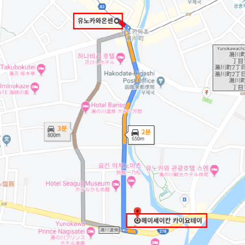 하코다테의 명물료칸인 평성관 카이요테이는 최상층에 위치한 대욕장 노천온천이 명물인 료칸이다. 날씨가 화창할 때에는 하코다테산, 하코다테 공항, 저 멀리 츠가루 해협까지 바라보면서 온천이 가능하다. 특히 다른 곳과 특이한 점은은 아카유(赤湯)라고 하여 온천의 색깔이 투명식이나 하늘색이 아닌 토양색의 온천이라는 것이다. 카이요테이에서만 즐길 수 있는 아카유는 신경통, 위장병, 어깨결림, 염좌등 온 몸에 걸쳐서 효능이 있다고 전해져 내려오며 아직까지도 많은 현지인들에게 사랑받고 있는 온천 수질이다. 객실은 일본의 전통적인 화실을 중시으로 대형단체부터 개인고객까지 폭넓게 사용할 수가 있으며 식사는 현지의 신선한 식재료를 이용한 가이세키 요리 및 해산물 뷔페요리를 이용할 수가 있다. |