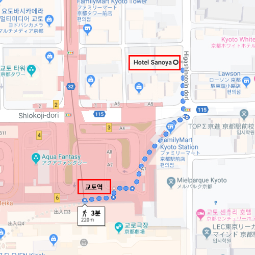 숙박지 주변교토역에서 도보 약 3분 소요 |