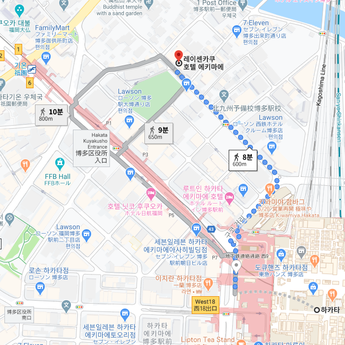 -하카타역에서 도보 5분 거리에 있는 비지니스 호텔인 레이센카쿠는 공항에서 10분이면 도착하는 입지적 장점을 가진 호텔이다. 비지니스 호텔의 강점인 경제적인 가격과 더불어 입지적 조건 때문에 젊은 관광객에게 인기를 얻고 있는 곳으로 특히 혼자 떠난 여행객에게 호평을 얻고 있는 곳이다. 물론 트윈, 더블, 패밀리룸 등 다양한 객실을 보유하고 있으므로 커플이나 그룹 여행에도 대응이 가능하다. 휴양보다는 후쿠오카 지역의 관광을 목적으로 떠난 여행에 적합하다. 특히 하카타 시내에 위치한 호텔이기 때문에 쇼핑이나 공연 관람 등을 위해 찾은 분들도 많으며 공원 앞에 위치하고 있어 도심의 호텔이지만 시끄럽지 않고 차분한 숙박을 제공한다. |