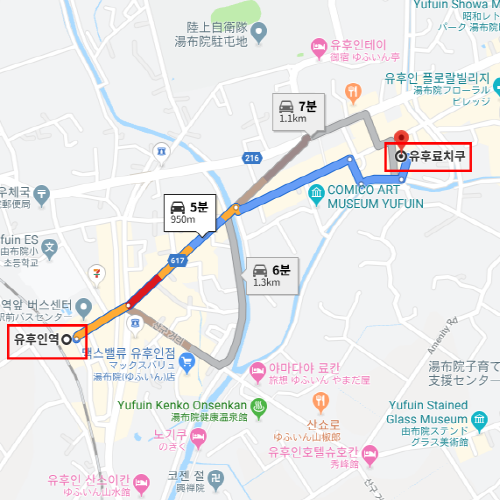 숙박지 주변유후인역에서 차로 약 5분 소요 (도보 약 13분) |