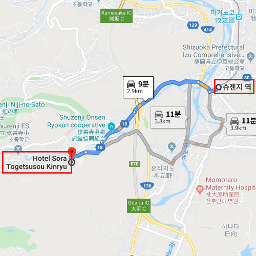 "보다 높이", " 보다 멀리" 우주의 하늘에서 즐기는 이색 공간을 제공하는 것을 컨셉으로 하였기에 료칸이름을 "소라(일본어명: 하늘)"라 칭하였다. 슈젠지 온천의 중심가에 위치하여 있고 슈젠지 전체를 내려다 볼 수 있는 위치에 있는 료칸으로서 슈제지의 맑은 공기를 맘껏 들이킬 수가 있다. 슈젠지온천지를 한 눈에 감상할 수 있는 노천온천은 료칸 소라만의 매력이자 료칸을 즐기는 포인트이기도 하다. 슈젠지온천의 소라는 온천도 물론이거니와 식사 또한 일본 국내에서도 호평을 받고 있는 료칸이기도 하다. 슈젠지만의 자연과 고급 료칸에서의 느긋한 하루를 보내고 싶은 손님들에게 적극 추천하는 료칸이다. |