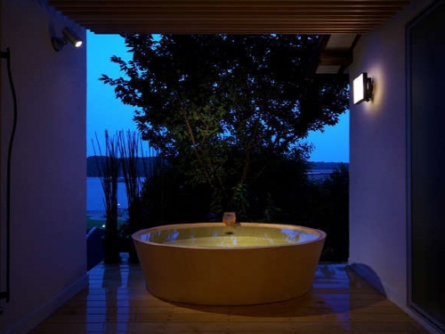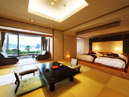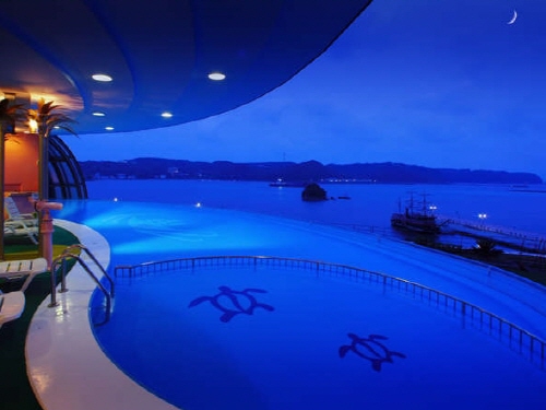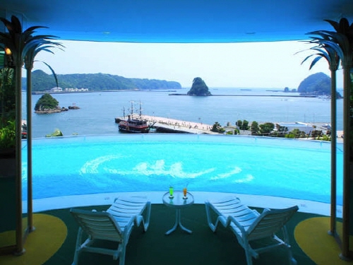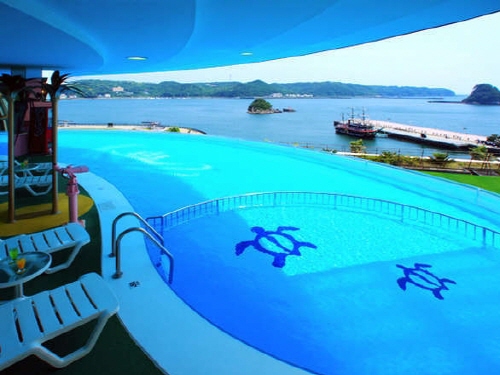 쿠로부네 호텔은 일본의 신혼여행지로 각광받고 있는 시모다역에서 송영차량으로 5분거리에 있는 온천호텔이다. 전 객실이 바다를 향하고 있어 오션뷰가 가능하며 특히, 시모다항을 바라보면서 즐길수 있는 온천욕은 시모다에서도 손에 꼽히는 명물거리이다. 특히 일반객실부터 전용 노천온천이 포함된 객실까지 다양한 니즈를 수용할 수 있는 규모이다. 특히 쿠로부네 호텔에서는 1년중 이용가능한 풀이 있으며 깊이는 어린이용은 50cm, 성인용은 120cm이다. 돔형식으로 되어있으며 여름에만 돔을 개방해 놓고 이용이 가능하다. 또한 가죡전용 전세탕도 3곳이나 구비하고 있어 대욕장은 물론이거니와 프라이빗으로 가족전용으로 온천도 이용이 가능한 것이 장점이다. 시원한 바다와 함께 따뜻한 온천을 함께 즐기고 싶은 손님들에게 추천한다. |