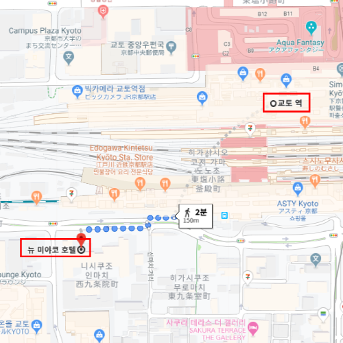 교토역에서 도보 2분에 위치한 접근성 좋은 호텔 신 미야코 호텔. 호텔에 들어서자마자 아쿠아크리스탈이 눈에 들어온다. 물 위에 떠있는 듯한 다이아몬드 형태의 아쿠아크리스탈은 전면이 유리된 아름다운 예식장으로 신 미야코 호텔의 심볼이다. 2015년 2월에 리뉴얼한 로비와 프론트는 호텔의 세련미를 더한다. 고급스러운 객실부터 여행객을 위한 저렴한 객실까지 다양한 객실을 구비하고 있으며 식사 역시 일식, 중식, 뷔페, 바 등 다양성을 중시하고 있다. 일반적인 호텔의 조식 뷔페를 뛰어넘어 화정식, 양식 세트메뉴, 뷔페 등 고객에 맞춰 버라이어티하게 준비하고 있어 여행객 사이에서 평이 좋은 호텔이다. 심지어 짐을 맡아주는 서비스도 실시하고 있어 교토를 관광하는 동안 무거운 짐을 들고 다니지 않아도 되니 교토 여행에 안성맞춤인 편리한 호텔이다. |