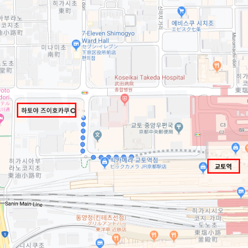 숙박지 주변교토역에서 도보 약 3분 소요 |