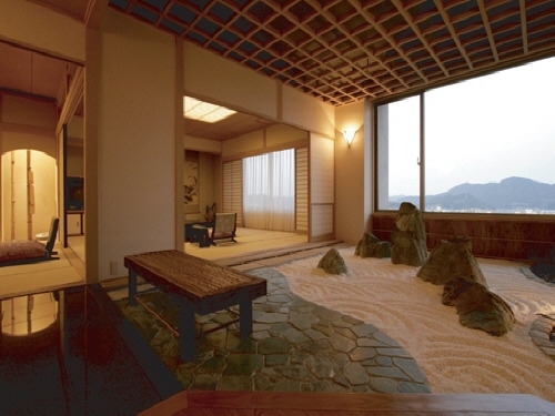일본의 삼대 미인온천으로 유명한 우레시노 온천지에 위치한 호텔. 아트리움 로비에서는 스크린에 꽃이 피어오르고 시스루 엘리베이터로 올라가면 여유와 휴식의 공간이 펼쳐진다. 아트리움의 메인인 스크린은 지상 30미터에서 수직으로 떨어지는 폭포 스크린으로, 벚꽃, 자양화, 단풍 등 일본의 사계절을 대표하는 이미지를 투영하는 모습이 장관이다. 폭포 스크린 맞은편에 있는 엘리베이터에서는 광섬유에 의해 꽃들의 색이 달라지는 모습을 감상할 수 있다. 그리고 엘리베이터에서 내리는 순간 일상을 벗어나 편안한 안식의 세계로 인도한다. 최상층에 있는 대욕장과 노천온천에서는 우레시노의 온천가를 내려다보며 여행의 피로를 풀 수 있다. 각질화된 피부를 부드럽고 촉촉하게 만들어주기로 유명한 우레시노의 온천에 몸을 담그며 느긋하고 고급스러운 온천 여행을 이용하시고자 하시는 분께 추천드리고 싶은 료칸이다. |