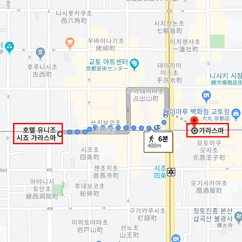 교토의 중심지인 시죠 가라스마는 관광과 비니지스의 거점으로 최적의 입지를 가진 호텔 유니조 교토 시죠 가라스마. 니죠성까지 택시로 약 10분, 기요미즈데라까지 택시로 약 15분, 기온까지 택시로 약 10분, 교토의 부엌이라고 불리는 니시키치바(시장)까지 도보로 약 15분 등 교토의 주요 관광지까지 접근성이 좋아 많은 관광객들이 찾는 호텔이다. 이 호텔은 동측 입구과 북측 입구가 다른 모양을 하고 있는 것이 특징인데, 현대적인 입구의 북측 입구와는 달리 동측 입구는 일본의 전통적인 분위기를 지닌 입구이다. 로비에 들어서면 안 쪽으로 작은 안뜰이 있어 석등과 나무로 장식되어있다. 계절에 따라 벚꽃나무, 단풍나무 등으로 분위기를 바꾸고 있어 아시아의 사계절을 보여주고 있다. 특히 재미있는 것은 로비 한 쪽으로 있는 일본식 돌정원이다. 카레산스이(枯山水)라는 방식의 정원은 물을 사용하지 않고 모레나 자갈 등으로 물을 표현하여 바라보고 있노라면 잠시 명상에 빠져들게 된다. 관광을 위한 여행자에게 적합한 호텔이다. 특히 혼자 또는 커플로 오는 여행객에게 편리하다. |