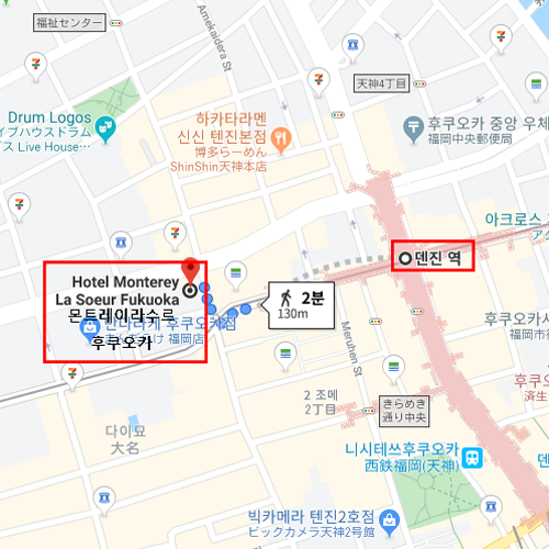 지하철 텐진역 도보 2분 거리의 이동이 편리한 호텔. 전 객실 와이파이가 가능하며 80%의 금연실을 가지고 있는 호텔이다. 여성이 안심하고 호텔을 이용할 수 있게 엘레베이터에는 시큐리티 보안설치가 되어 있다. 일본 내의 유명 몬트레이 계열 호텔로서 독특한 디자인의 건물과 객실이 눈에띄는 호텔이다. 벨기에의 디자인 컨셉을 가진 인테리어로 각 객실별로 유럽을 느낄 수 있도록 유럽 풍 디자인을 추구한 호텔이다. 모던한 침구와 쇼파, 벽지 디자인의 인테리어와 다른 호텔과는 다른 나무바닥이 특징이다. 호텔의 카페트 바닥을 싫어하는 분들이라면 몬트레이 라수르 호텔을 추천한다. 전체적으로 가격대비 서비스, 객실 상태가 매우좋아 일본인들에게 인기를 끌고 있는 호텔이다. |