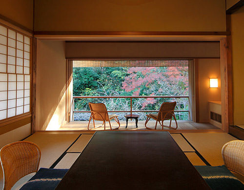 유서 깊은 온천지, 슈젠지의 본당을 지키기 위해 숙박하던 스님에 의해 시작된 료칸으로 무려 520년의 전통을 가진 고급 료칸 아사바. 노렌을 걷고 로비로 들어가면 600평 크기의 연못 위에 떠있는 듯 보이는 게케이덴 노 무대가 있다. 신이 내린 선물이라고 극찬 받는 이 노 무대는 밤이 되면 불이 밝혀진 무대가 어둠 속에서 떠올라 이 세상에 존재하지 않는 신비로운 세계로 인도한다. 료칸의 역사가 발걸음을 무겁게 하지 않도록 현대적인 서비스와 접객 태도로 전통 있는 료칸 다운 감동을 전해준다. 관내 모든 곳이 세련미 있는 구조로 되어있으며 흰색을 기조로 한 깔끔한 화모던한 분위기를 연출하고 있다. 17개의 객실이 모두 다르며 창밖으로 보이는 풍경도 다르다. 넘치지도 모자라지도 않은 청결하고 품격 있는 객실은 일본의 미학을 느끼게 한다. 마치 일본화 속에 들어가 있는 듯한 감각을 느끼게 하는 고급 료칸으로 품격 있는 여행을 원하시는 분들과 기념일을 위한 장소로 고급 료칸을 찾는 분들께 추천드리는 료칸이다. |