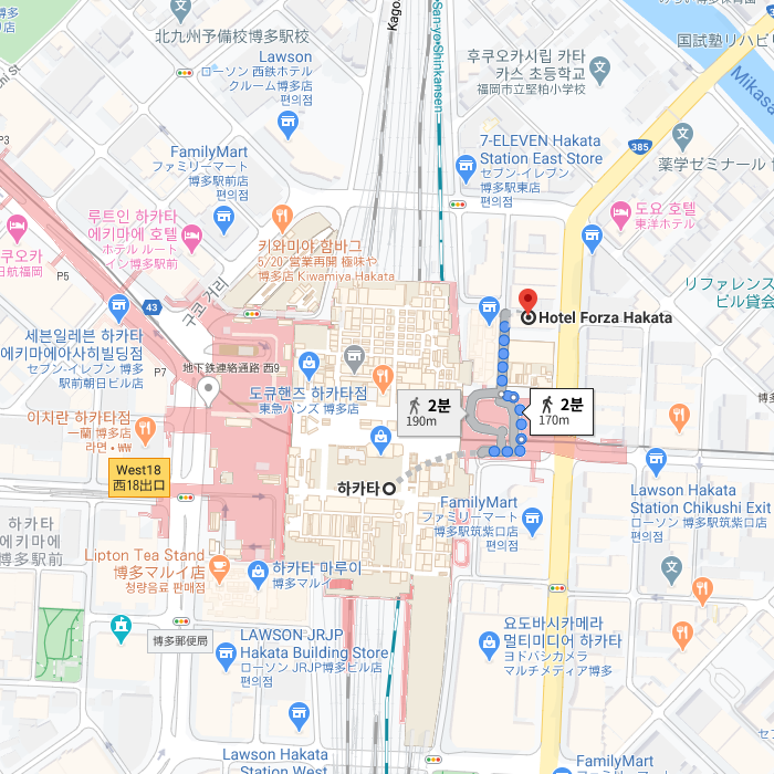 -포르자(Forza)는 이탈리아어로 힘을 의미한다. 활력이 넘치는 공간으로 기능적인 것을 필요한 만큼 배치한 스마트 호텔을 컨셉으로 잡고 있다. 기능성과 독창성을 겸비한 인테리어와 장식들은 숙박객에게 편안함과 쾌적함을 제공해 준다. 전 객실 아이패드를 설치, 각종 스마트폰 충전기등을 보유하고 있어 편안하고 편리한 여행을 도와준다. 일부 객실에는 마사지 기계가 있으며, 커피 머신이 비치되어 있기도 하다. 전 객실과 로비는 금연이며 헐리우드 트윈 객실 등 아이들과 함께 하기도 좋은 호텔이다. 귀여운 아동용 비품이 따로 나오기도 하니, 작은 아이들이 있을 경우 추천하고 있다. 또한 하카타역 도보 1분 거리에 있어 다른 지역으로의 이동이 편리하며 조식 시간은 06:30부터 준비가 가능한 점 등, 여행객들에게는 매우 편리하게 이용할 수 있는 호텔이기도 하다. 전 객실은 인터넷이 가능하며, 로비에는 무료로 이용할 수 있는 컴퓨터가 마련되어 있다. 하나부터 열까지 고객의 편의를 생각하는 호텔이며 비즈니스나 커플, 여성들에게 강력 추천하는 호텔이다. |