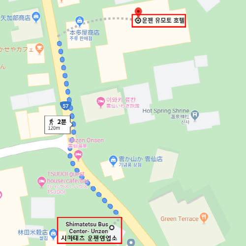 지금으로부터 약 310여 년 전인 1695년 운젠 온천지에 온천 관리 료칸으로 유모토료칸이 설립되었다. 창업 이래 다이묘의 거주지이자 관가로서 이용되기도 하였고 많은 문인의 사랑을 받아온 료칸이다. 말 그대로 운젠의 역사와 함께 지금까지 그 명맥을 유지하고 있는 유서 깊은 곳으로 유모토(탕원)라는 이름 그대로 풍부한 온천의 양을 자랑하는 곳이다. 운젠의 온천은 유황성분을 함유하고 있는 것으로 유명한데 살균 및 피부미용에 효과가 있어 메이지 시대부터 외국인에게까지 그 명성을 알려왔다. 특히 여름에도 낮 기온이 30℃를 넘지 않는 천혜의 자연환경과 지표의 갈라진 틈에서 솟아오르는 수증기와 95℃를 넘는 원천, 코 끝을 스치는 유황 냄새, 하얗게 변한 흙이 인상적인 운젠 지옥, 시마바라 반도의 해산물 등 피서, 관광, 온천, 음식까지 휴가지로서의 모든 것을 갖추고 있는 운젠에서 오랫동안 이어온 서비스 정신을 그대로 계승한 유모토호텔은 남녀노소 누구에게나 인기 있는 료칸이다. |