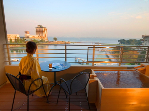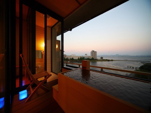 비와코의 서쪽 호수 연안을 따라 아름다운 울창한 산이 함께 조화된 자연의 절경을 전망 가능한 료쿠스이테이. 이 호텔은 자연의 모습 그대로 느끼고 즐길 수 있도록 나무, 바람을 컨셉으로 지어진 곳이다. 또한, 여행의 시간을 중요하게 보낼 수 있도록 최적의 환경을 제공하는 것을 목표로 전 객실 해방감이 느껴지도록 비와코 전망이 가능하게 설계되어 있다. 모던한 분위기와 일본 전통 화실이 조화된 객실이 준비되어 있으며 비와코의 절경과 객실이 자연스럽게 어우러지는 곳이다. 노천온천이 포함되어 있는 객실부터 전망온천 및 히노키 온천까지 다양한 객실이 준비되어 있어 여행 스타일에 따라 자유롭게 선택이 가능한 호텔이며 특히 테라스에서 바라보는 전망은 시간에 따라, 계절에 따라 수시로 변화하는 비와코가 만들어내는 자연의 파노라마를 감상할 수 있어 인기이다. 료쿠스이테이는 오고토 온천을 사용하는 곳으로서 객실 내 온천 시설 뿐만 아니라 대욕장과 노천온천을 이용할 수 있다. 비와코의 오고토 온천은 미용에 유명한 온천수로서 여성에게 특히 효과가 좋다. |