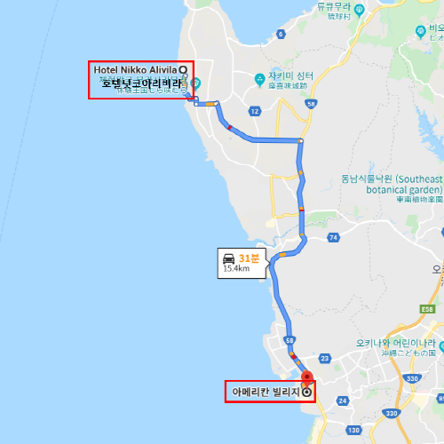 숙박지 주변아메리칸 빌리지까지 차로 약 31분 소요 |