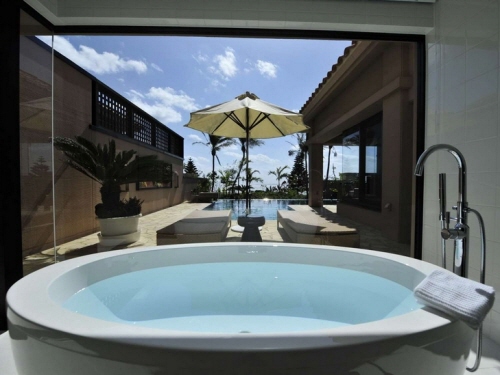 - 시기라 베이사이드 스위트 알라만다는 아름다운 대자연과 세련미를 모두 갖춘 오키나와 미야코지마의 광대한 리조트 시티에 있는 리조트 호텔이다. 시기라 리조트는 자연과 조화를 이루는 리조트 시티를 목표로 미야코지마 남단에 동서로 약 4km, 100만 평의 부지를 갖추고 있다. 깨끗하고 아름다운 바다와 연중 온화한 기후의 미야코지마에 세워진 시기라 베이사이드 스위트 알라만다는 녹음이 가득한 환경과 세련미, 이 두 가지를 모두 즐길 수 있는 리조트이다. 부지 내에 있는 꽃의 낙원은 260종에 달하는 초목을 보유하고 있으며, 바다거북이 헤엄치는 호수가 있는 생명의 낙원 등 다양한 레스토랑, 천연온천, 골프코스 등을 가지고 있다. 특히 모든 객실이 스위트룸으로 프라이빗 풀을 갖춘 객실만 총 86실에 이르는 등 일본 최대 규모를 자랑한다. 팻 동반 가능 객실도 있어 특별한 가족 여행이나 신혼여행에 적극 추천할 수 있다. |