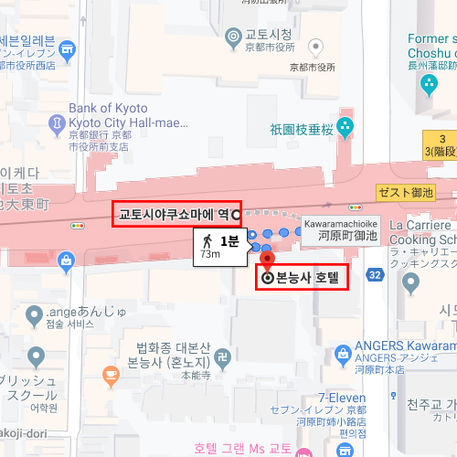교토 시내 관광의 최적 위치를 자랑하는 혼노지 료칸. 교토역에서 지하철로 10분 정도의 거리로서 교토 시약소 주변의 위치해 있어 교토의 번화가 카와라마치와 아주 근접해 있다. 혼노지 료칸에서의 조금만 걸어가면 테라마치 거리를 만날 수 있는데 북쪽으로 가면 오래된 전통을 이어온 서예도구, 공예품 등 작고 아기자기한 교토의 가게들을 만날 수 있다. 그리고 남쪽으로 이동하면 수많은 건축물과 세련된 쇼핑의 거리인 산조거리를 만날 수 있으며 오래된 교토문화박물관, 만화박물관 등 수 많은 문화시설에서 즐거움을 더할 수 있다. 혼노지 료칸은 교토의 정취가 느껴지는 작고 아기자기한 분위기의 객실이 준비되어 있다. 특히 석식은 객실 내 식사로서 계절의 신선한 식재료로 만들어진 아름다움이 담겨 있는 교토 창작 카이세키 요리로 눈과 입이 즐거운 요리를 맛볼 수 있다. 혼노지 료칸은 일본의 수학여행지로서도 유명한 숙박지이다. 과거와 현재 변화없는 서비스와 쾌적한 환경을 제공해주어 교토 내에서도 믿음 가는 숙박업소로 널리 추천되고 있는 료칸이다. |