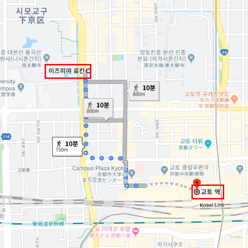 숙박지 주변교토역에서 도보 약 10분 소요 |